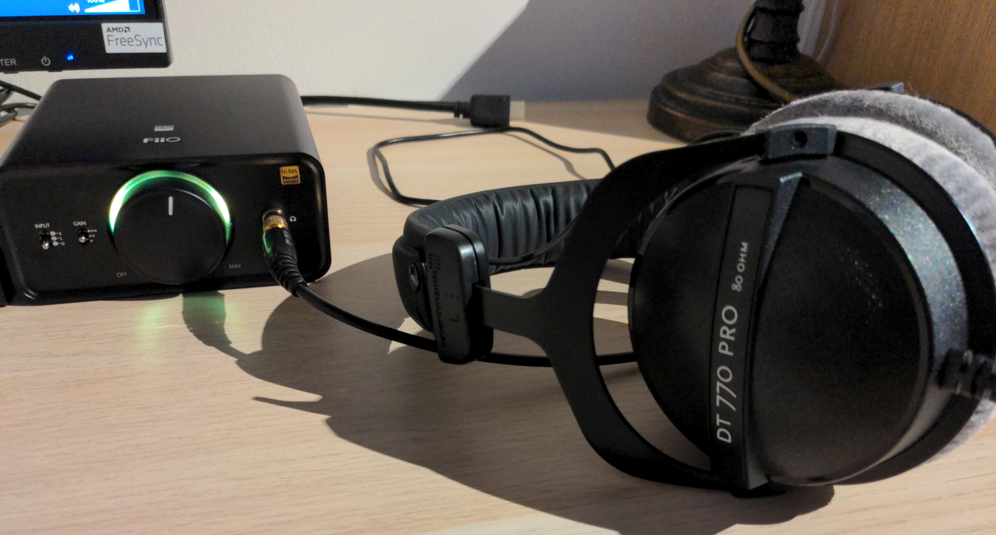 Already a while ago I purchased a “Fiio K5 Pro”. It had some good reviews and wasn’t too expensive. As headphone I’m using a “Beyerdynamic DT 770 Pro (80 Ohm)”. I really like this headphone as it’s quite comfortable and the sound quality is excellent. However, I don’t know if it is “expensive” enough to get the difference between “HiFi” and “HiRes”.