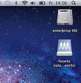 Again you’ll need fuse to make EncFS work. There is a project named MacFuse but it doesn’t seem to get a lot of attention lately and thus a 64bit version (which is required for Lion) is not available. Luckily there is a fork called Fuse4X and it works pretty good on Lion. So download the latest version from here (by the time of writing 0.90) and install it. Next you’ll need EncFS compiled against Fuse4X - you’ll find it here at LisaNet (German). Again, download and install. I haven’t found a GUI so you’ll have to use command line to mount the encrypted folder (yes, I know that’s a tough one for a Mac user… ;-) ). Create a folder as mount point first and open a terminal (or do both in the terminal):