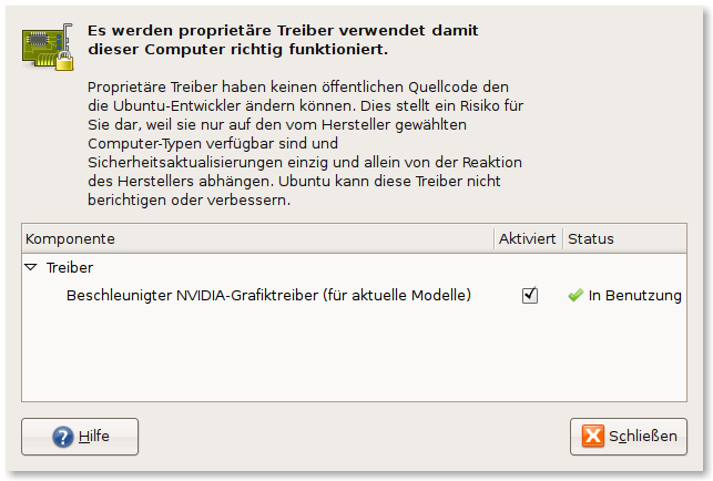 So far, so good. If you need to install any restricted drivers, like the Nvidia ones, this is the right time. If you’re running Ubuntu go to “System -> Administration -> Restricted Manager” (see screenshot below), if you’re running Kubuntu you’ll find the “restricted manager” in “KDE Control Center”. Just check the driver you want to install and it will be downloaded and configured properly. In my case, I installed the Nvidia driver and upon reboot I had Compiz running (only with Ubuntu, no default desktop effects in Kubuntu!).