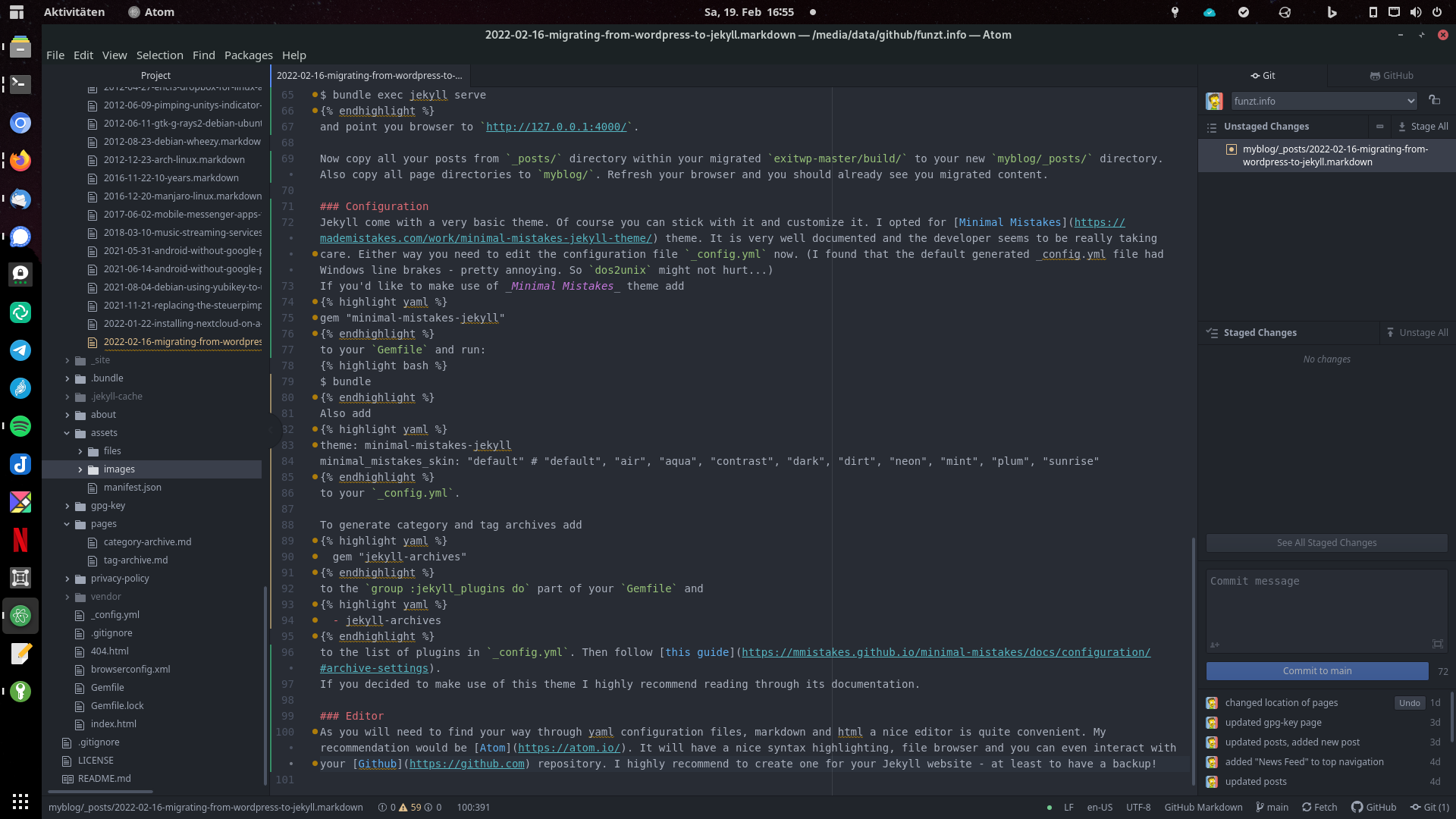 You will probably have to check all your posts and pages now and see if they look nice. exitwp did a good but not perfect job in my case. So I went over all generated markdown files and modified them where required. Atom will be a nice editor for that job.
