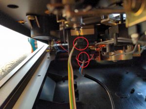 You have to do this with all three screws and then carefully lift it a bit. Took some fiddling around but it worked in the end. Do not try to lift it completely off the chassis because it’s connected with two cables to the chassis. Remove them first: