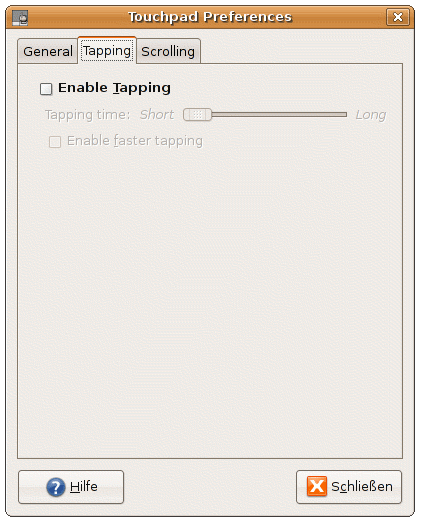 “gsynaptics” (or, if you prefer KDE “ksynaptics”) is a graphical frontend to configure your touchpad. To make this work, we need to add a few lines to “/etc/X11/xorg.conf”. So, use your favorite editor to edit the file: